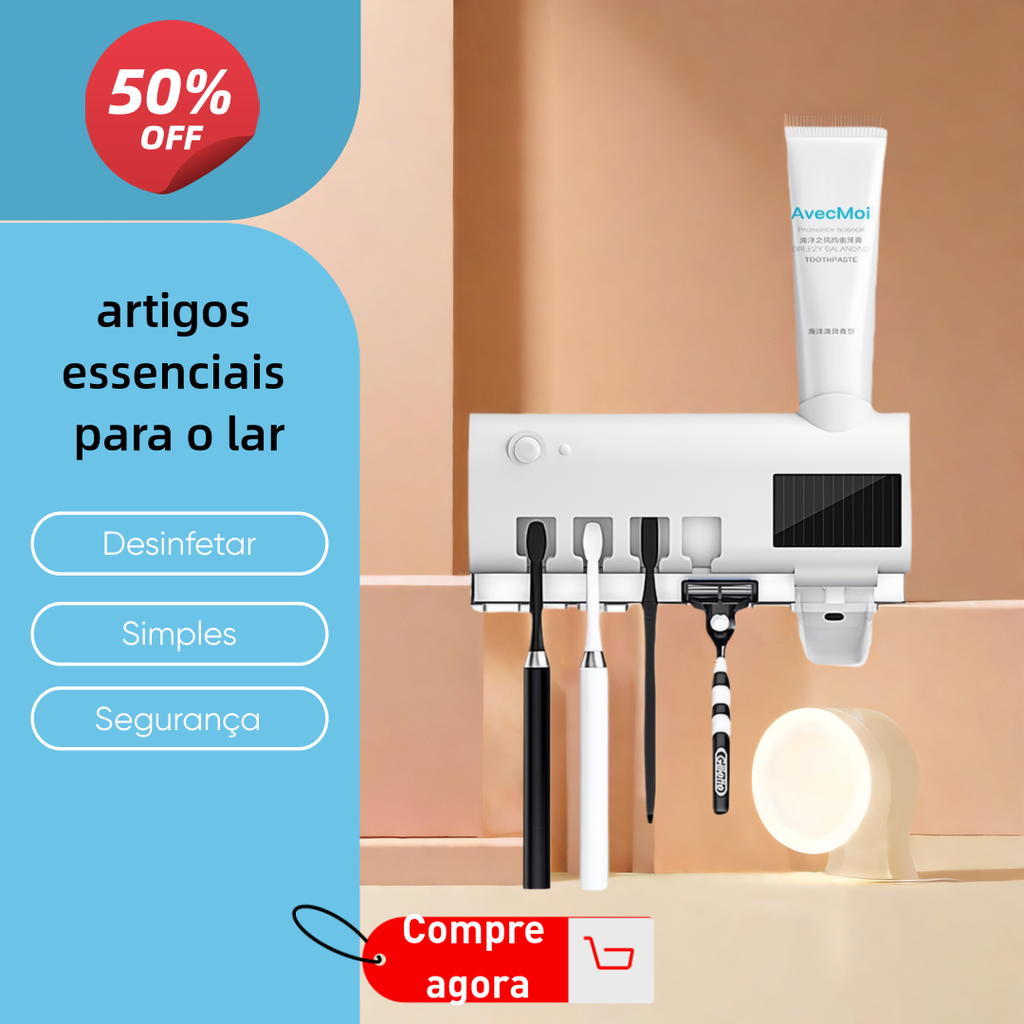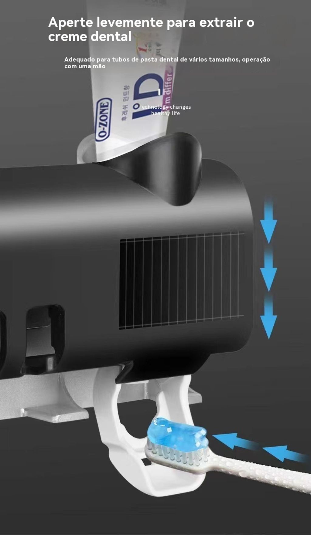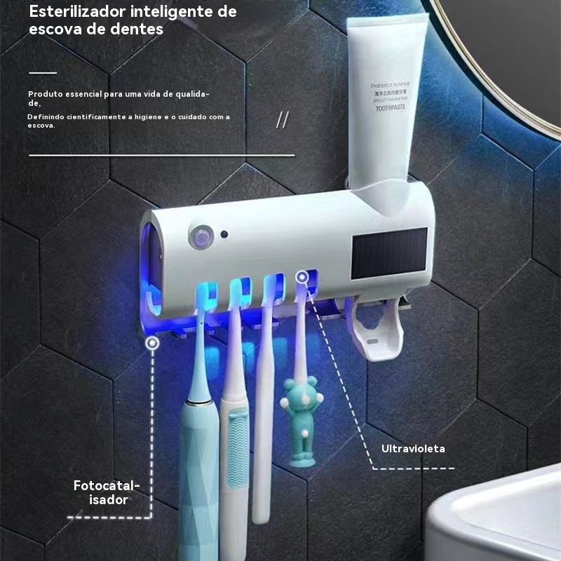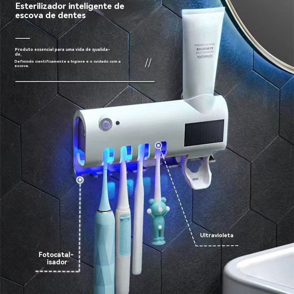Novo tipo de suporte elétrico inteligente para escova de dentes com desinfeção ultravioleta, dispensador multifuncional de pasta de dentes desinfetante, para instalação na parede da casa de banho.